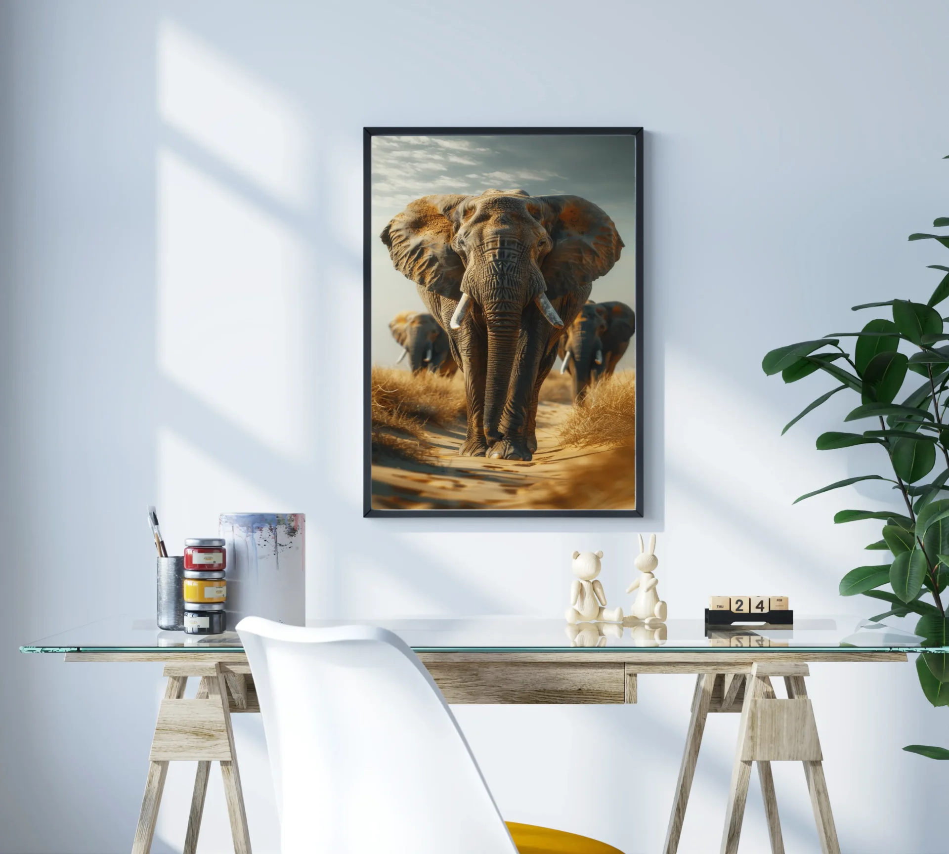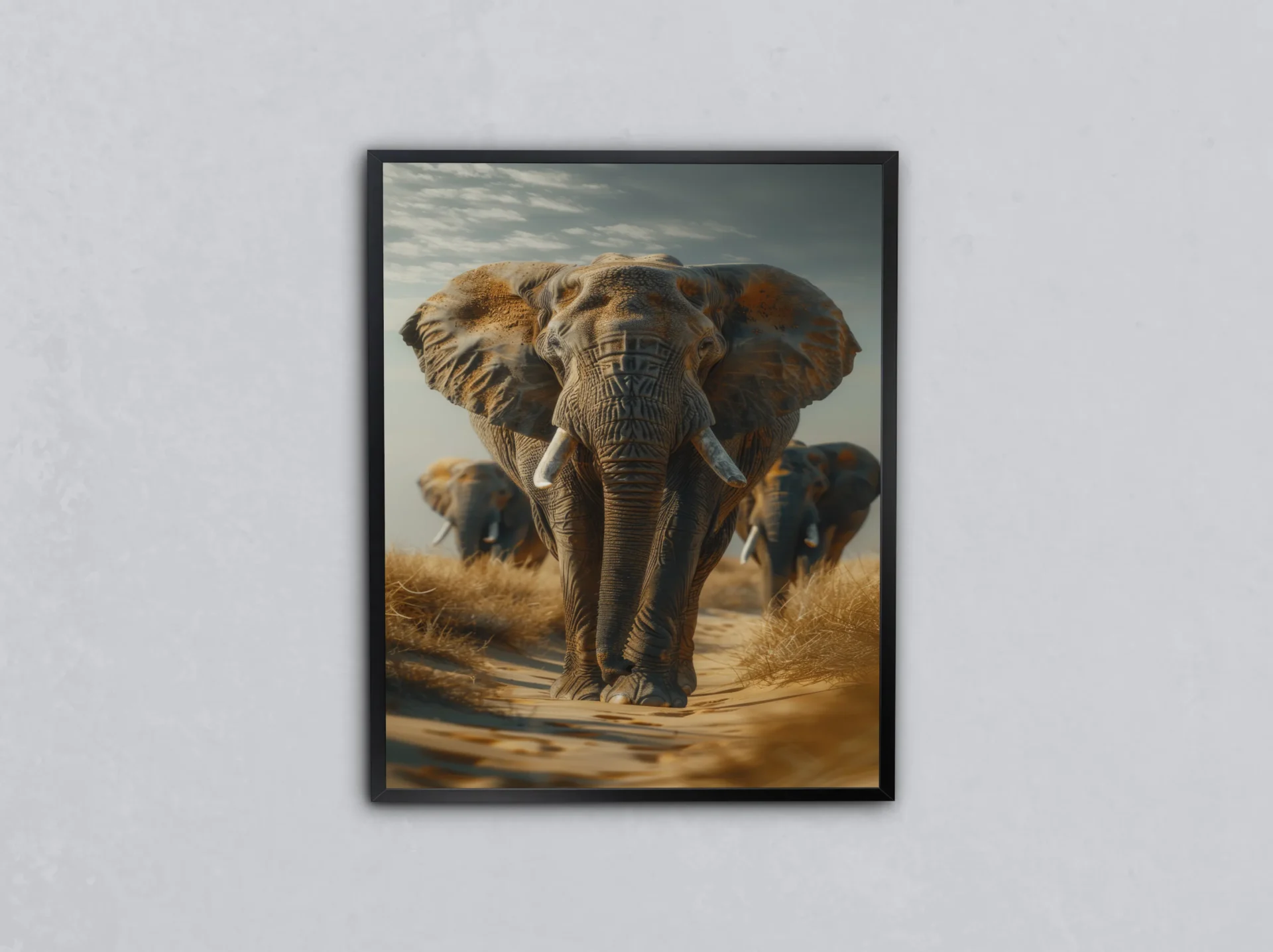 Yürüyen fillerin toprakla buluşan adımları, doğanın kudretini evinize taşır.