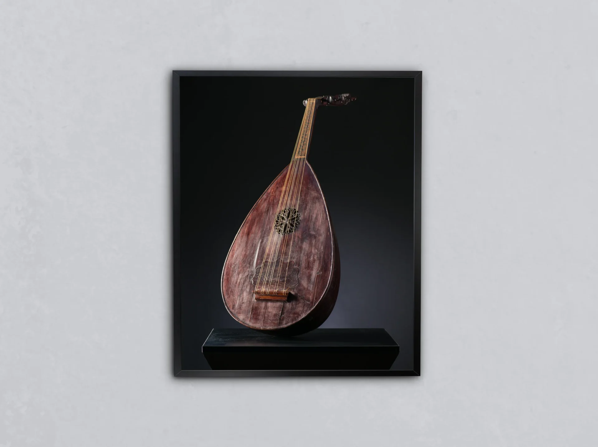 Koyu fonda belirginleşen ud, geleneksel melodilerin ruhunu yansıtıyor.