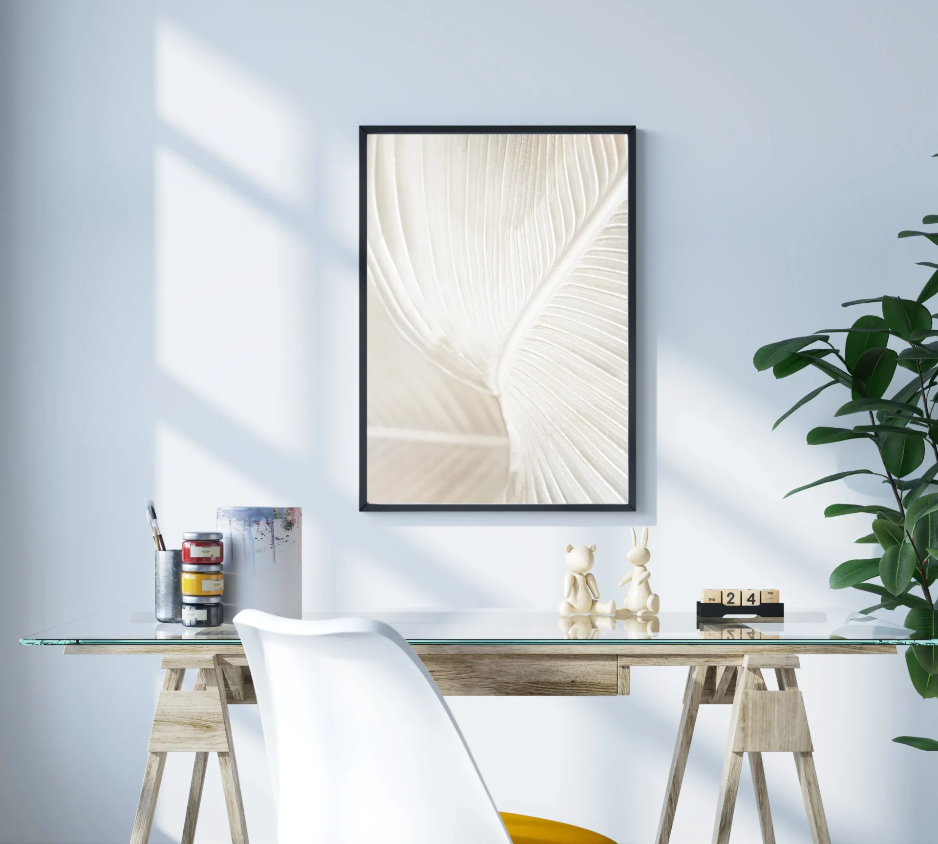 Yakın plan yaprak dokusunun zarif ve sade sunumu.