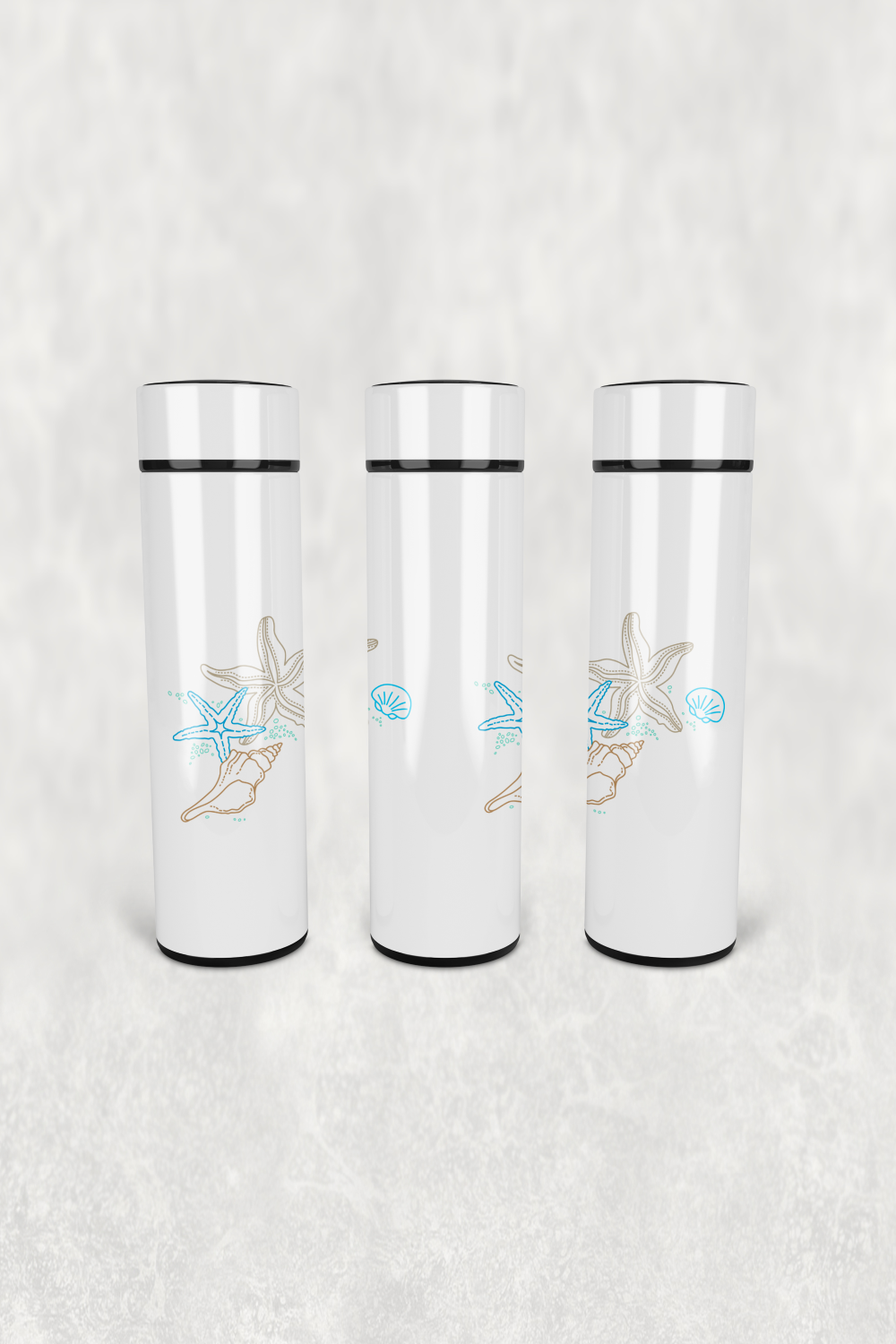 Deniz Yıldızı Kabuk Deseni Led Derece Göstergeli Paslanmaz Çelik Termos 500 ML