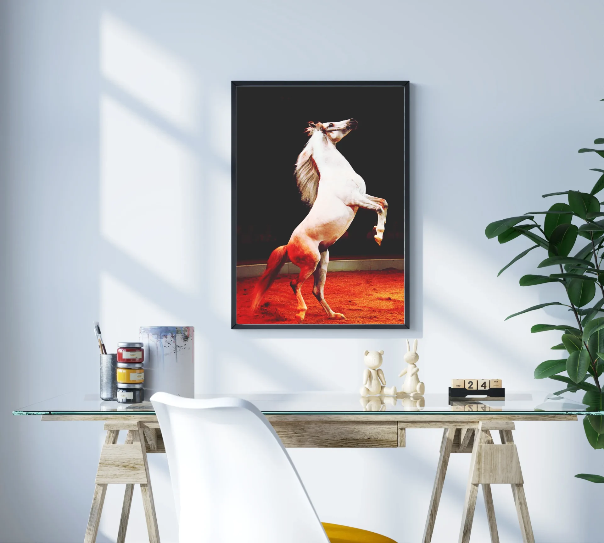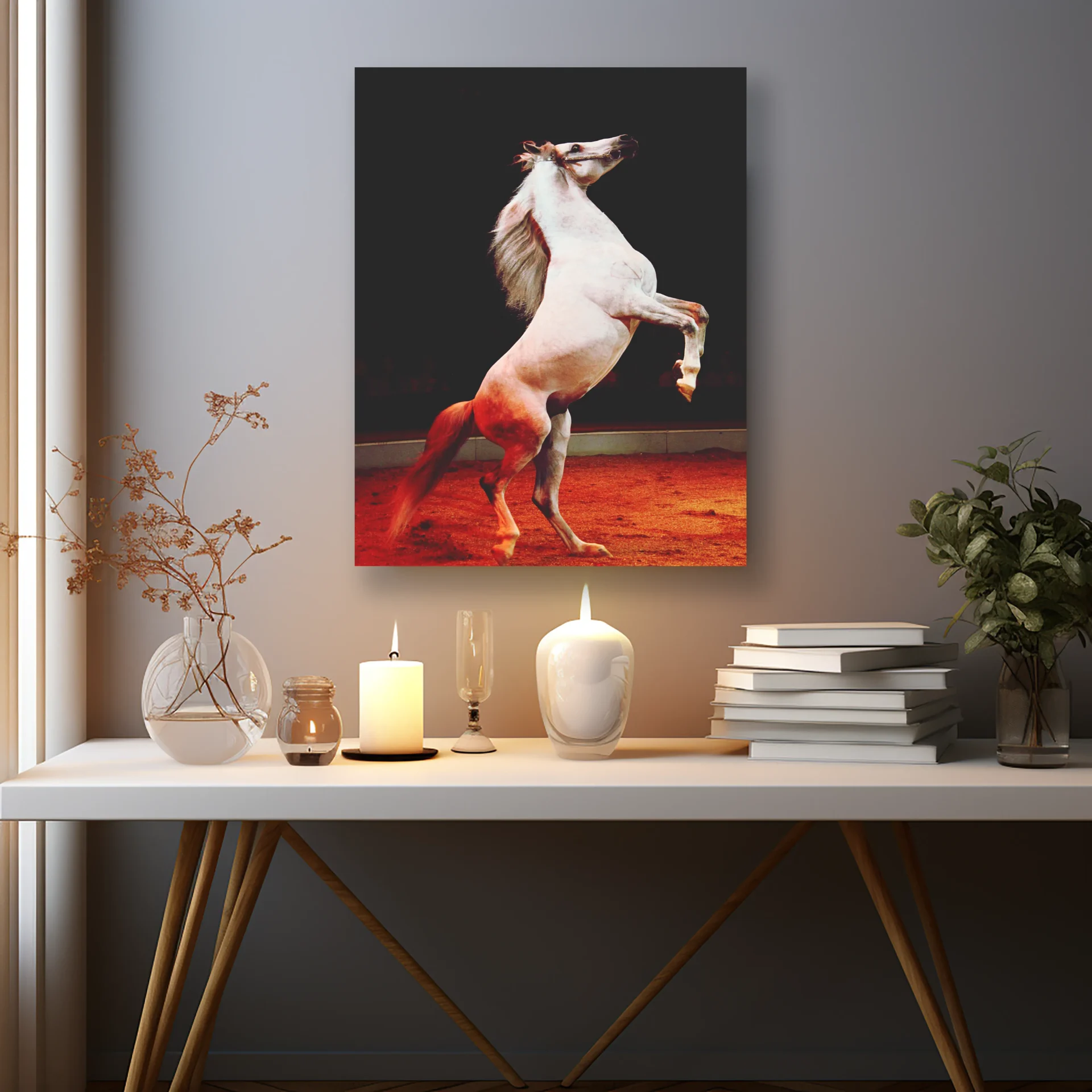 Yükselen bir atın özgürlük dolu pozu, cesaret ve zarafeti aynı karede buluşturur.