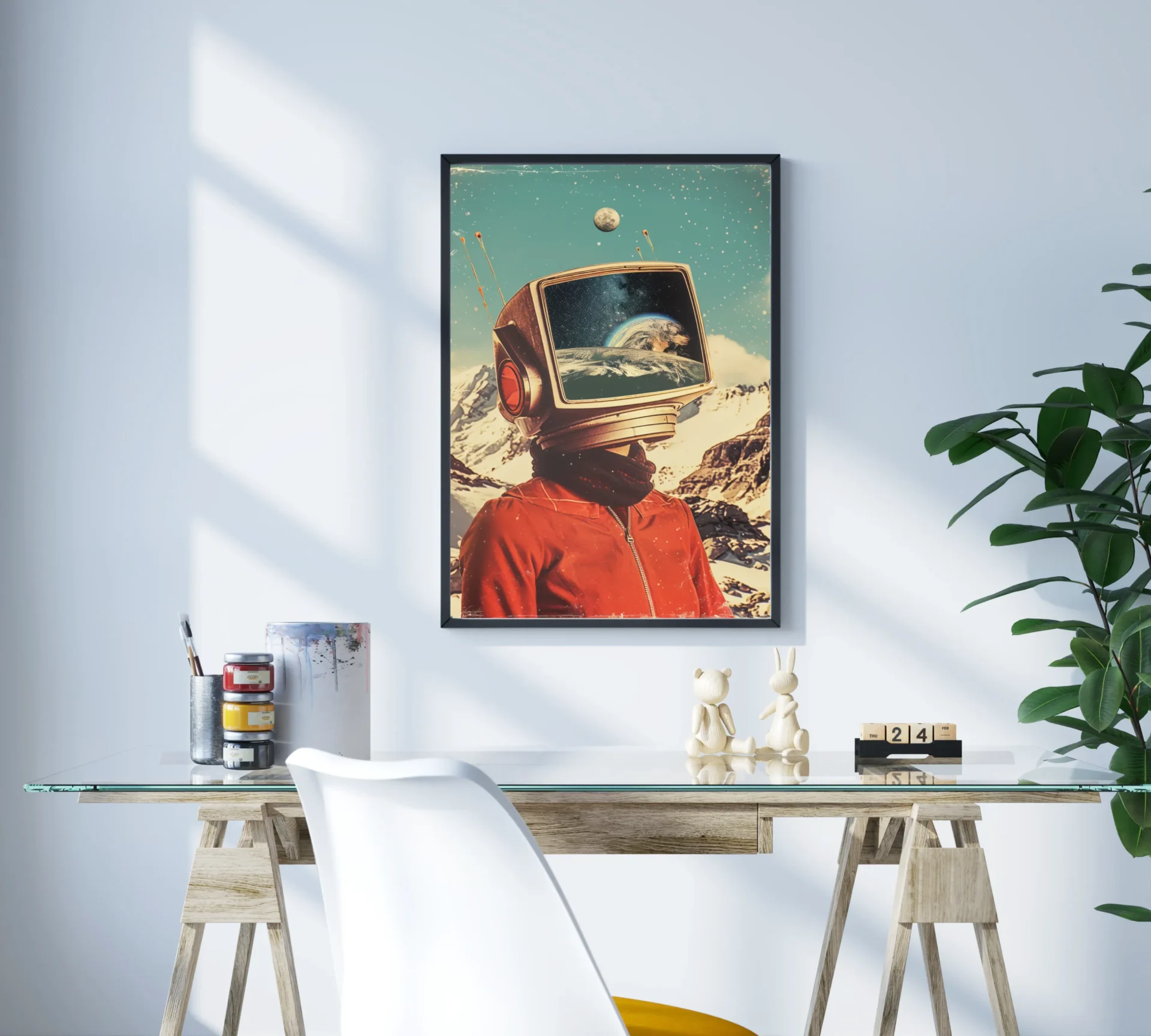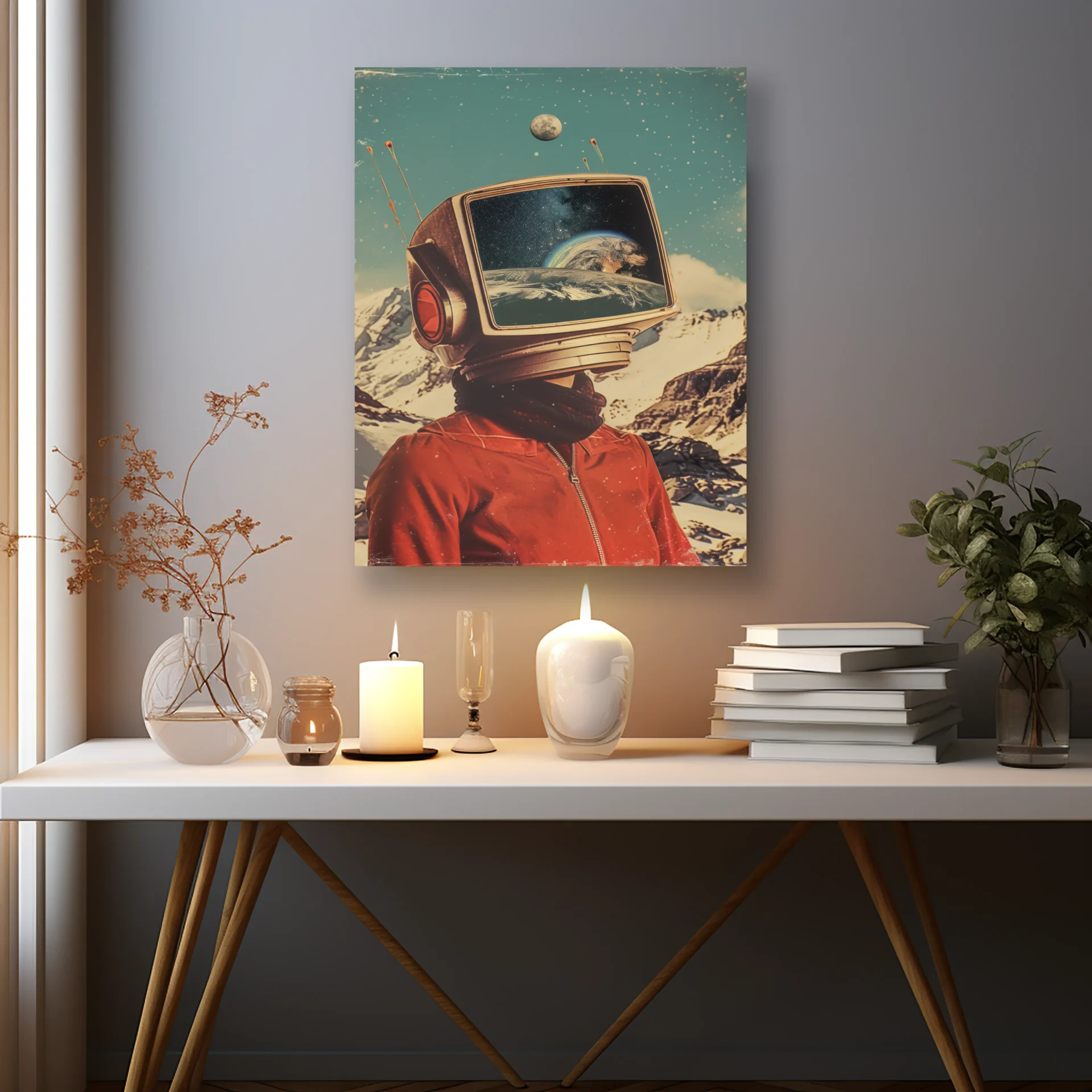 Başında ekran olan bir astronot, yıldızlarla kaplı gökyüzünde keşfe çıkıyor. Bilim kurgu sevenler için eşsiz bir tercih.