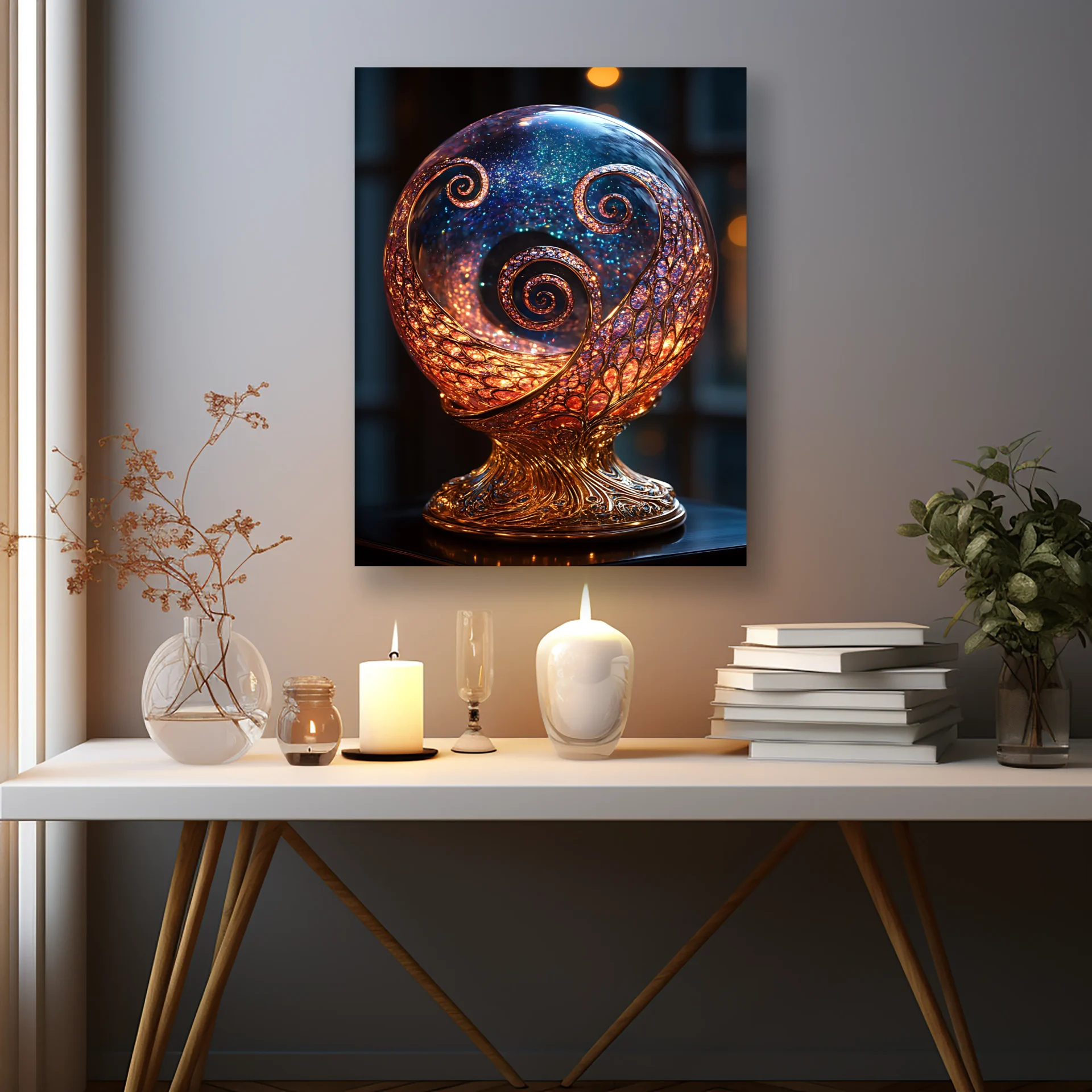 Işıltılı spiral yapısıyla bu tasarım, evinizde modern ve mistik bir atmosfer yaratır.