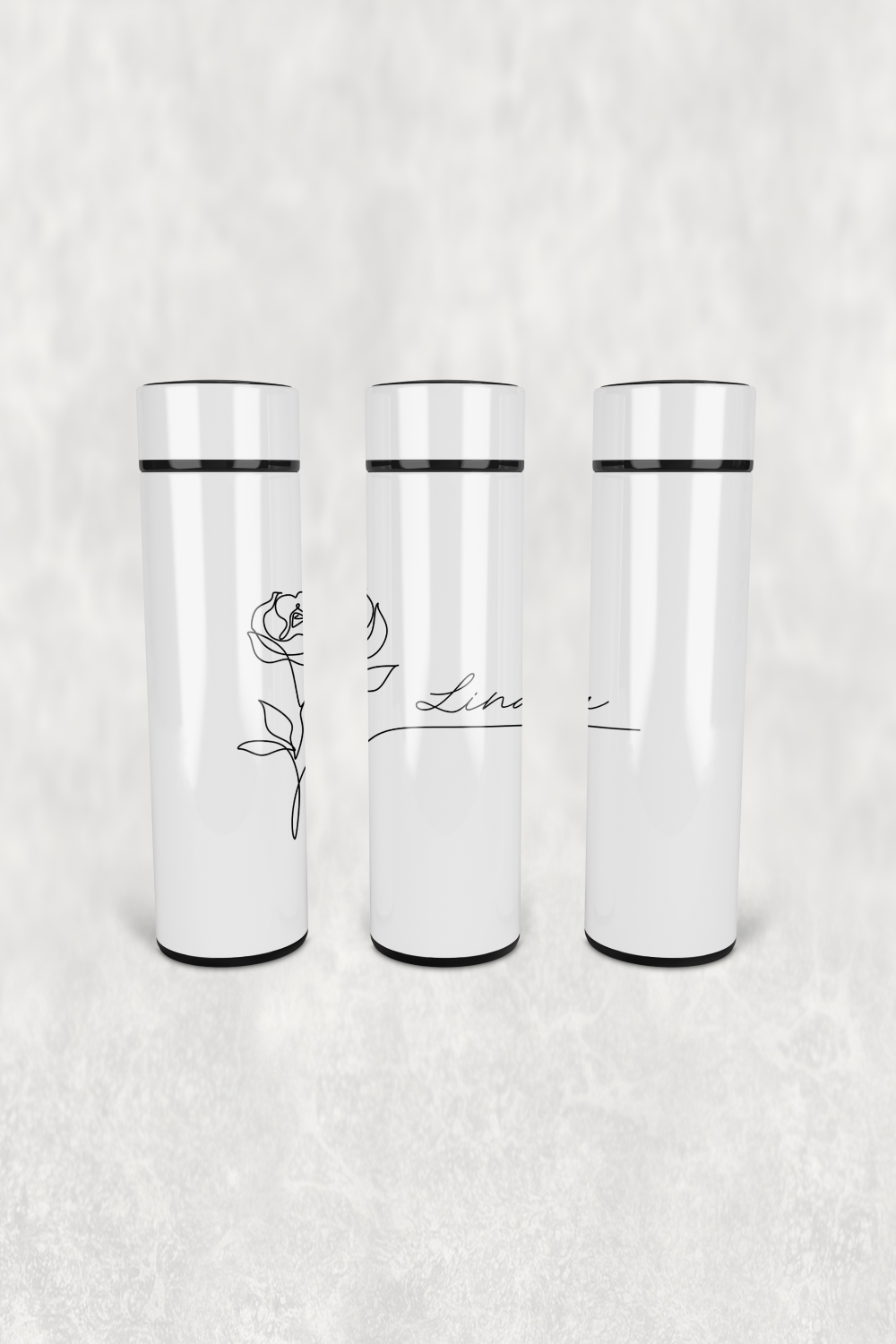 Lina Gül Çizimi Led Derece Göstergeli Paslanmaz Çelik Termos 500 ML
