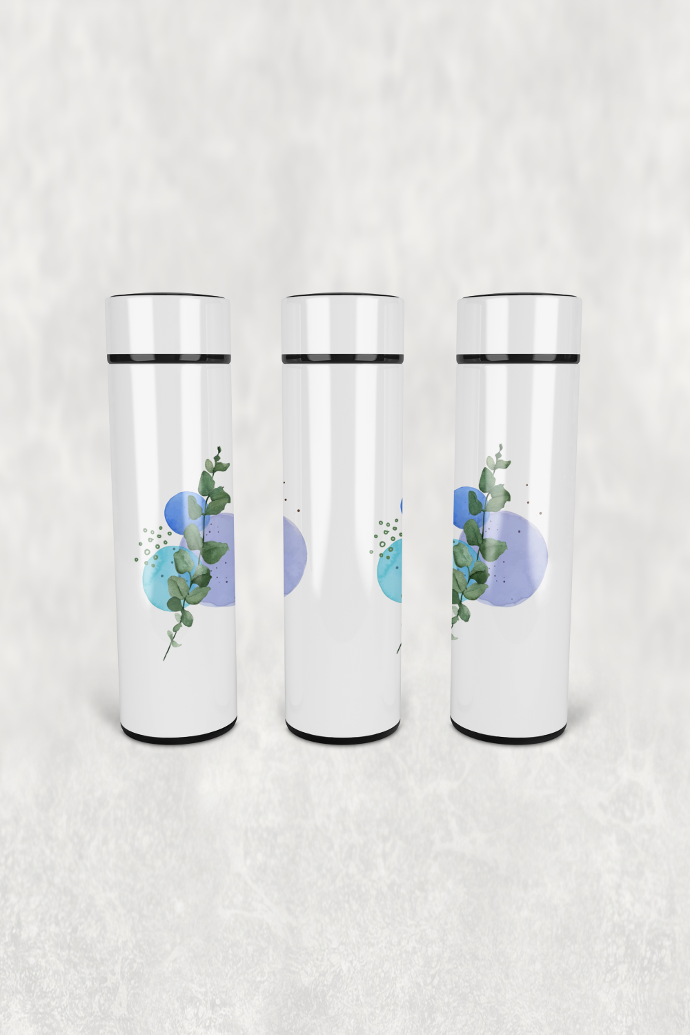 Mavi Yaprak Desen Led Derece Göstergeli Paslanmaz Çelik Termos 500 ML