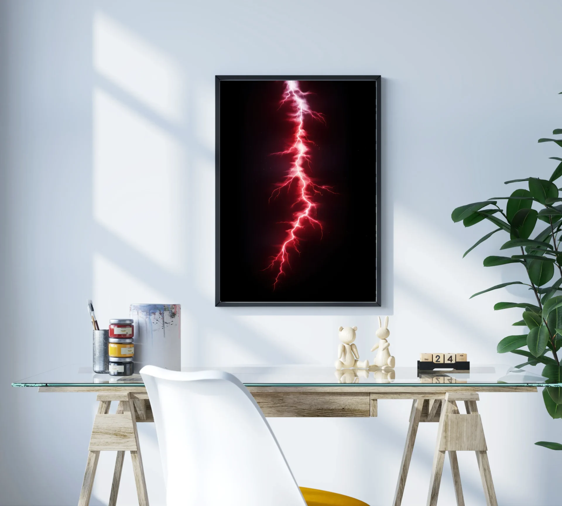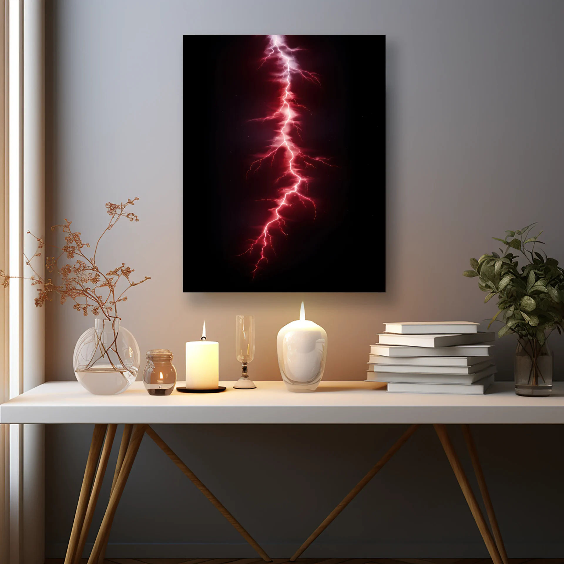 Geceyi yaran mor renkli yıldırım, görsel olarak büyüleyici bir doğa anı sunuyor. Modern ve enerjik duvarlar için güçlü bir alternatif.