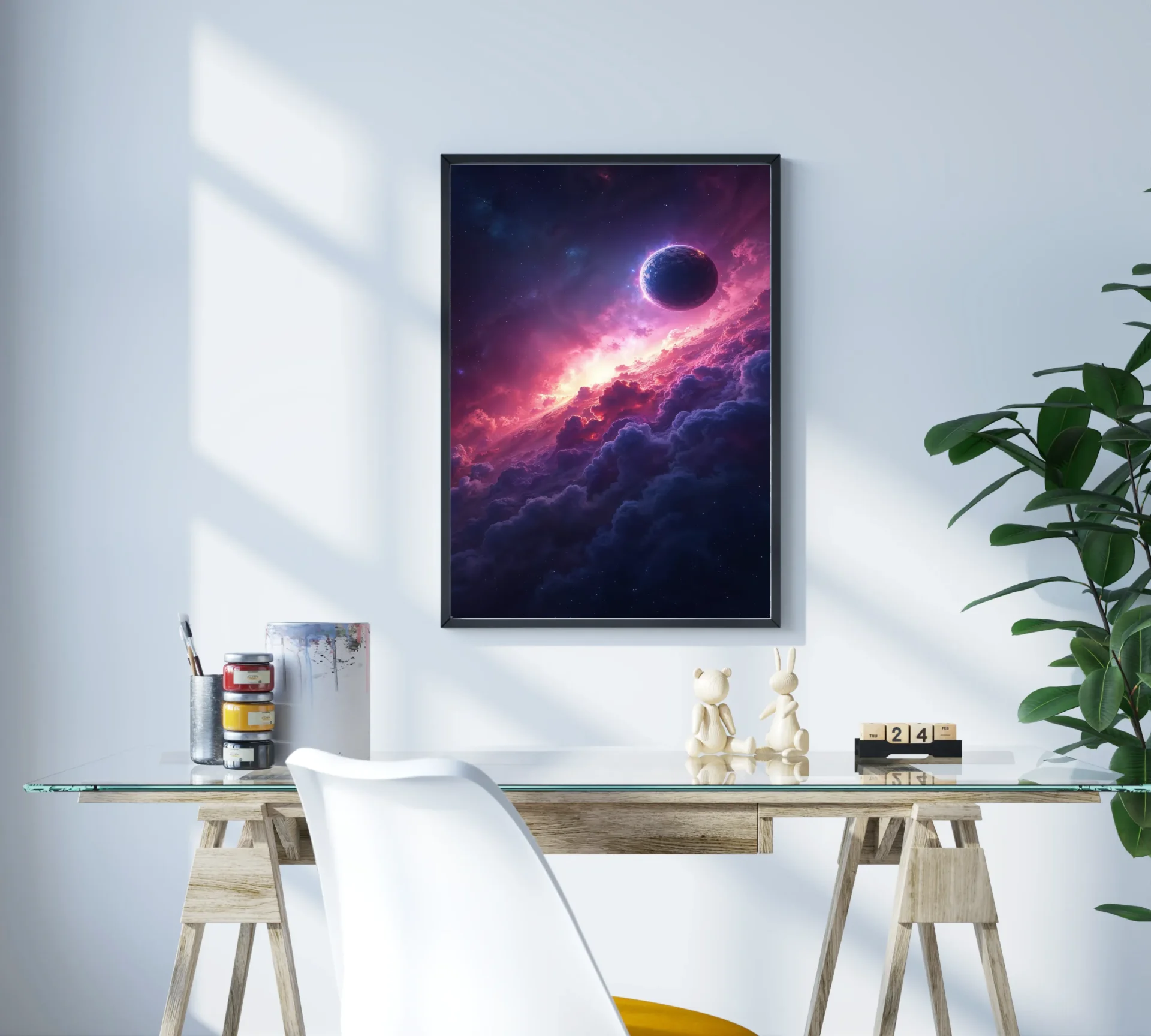Renkli nebulalar arasında süzülen gezegen, uzayın şiirsel yanını anlatır. Gökyüzü bir tuvale dönüşür.