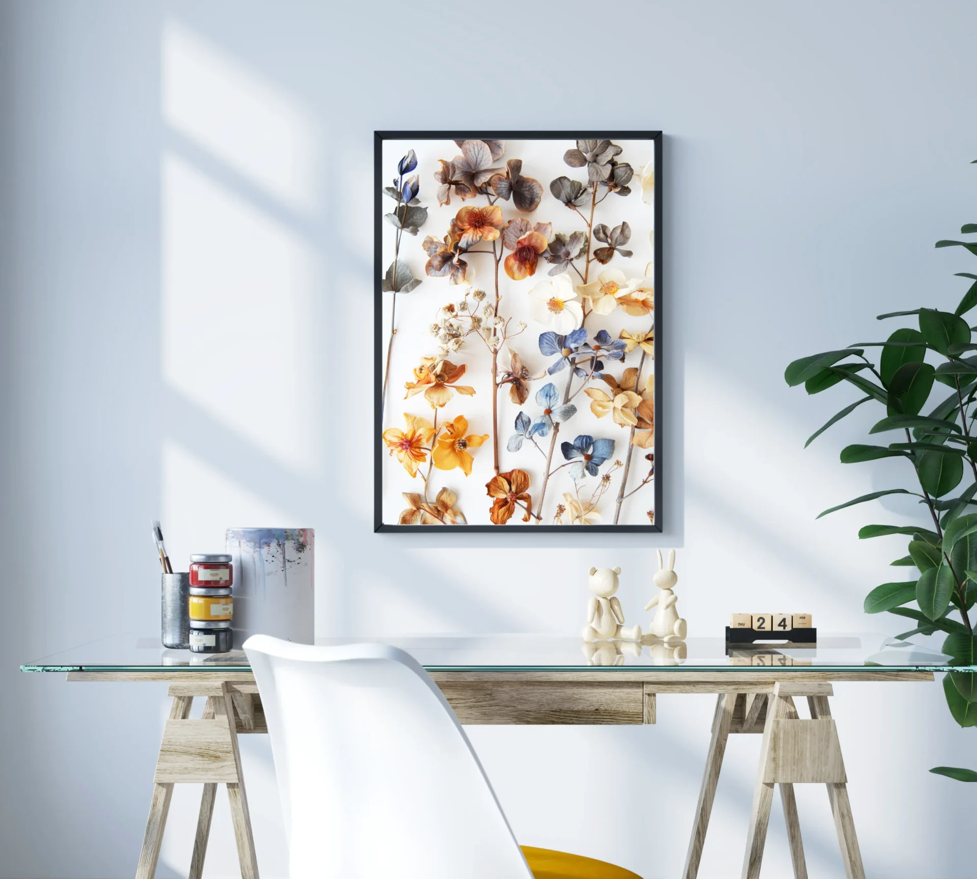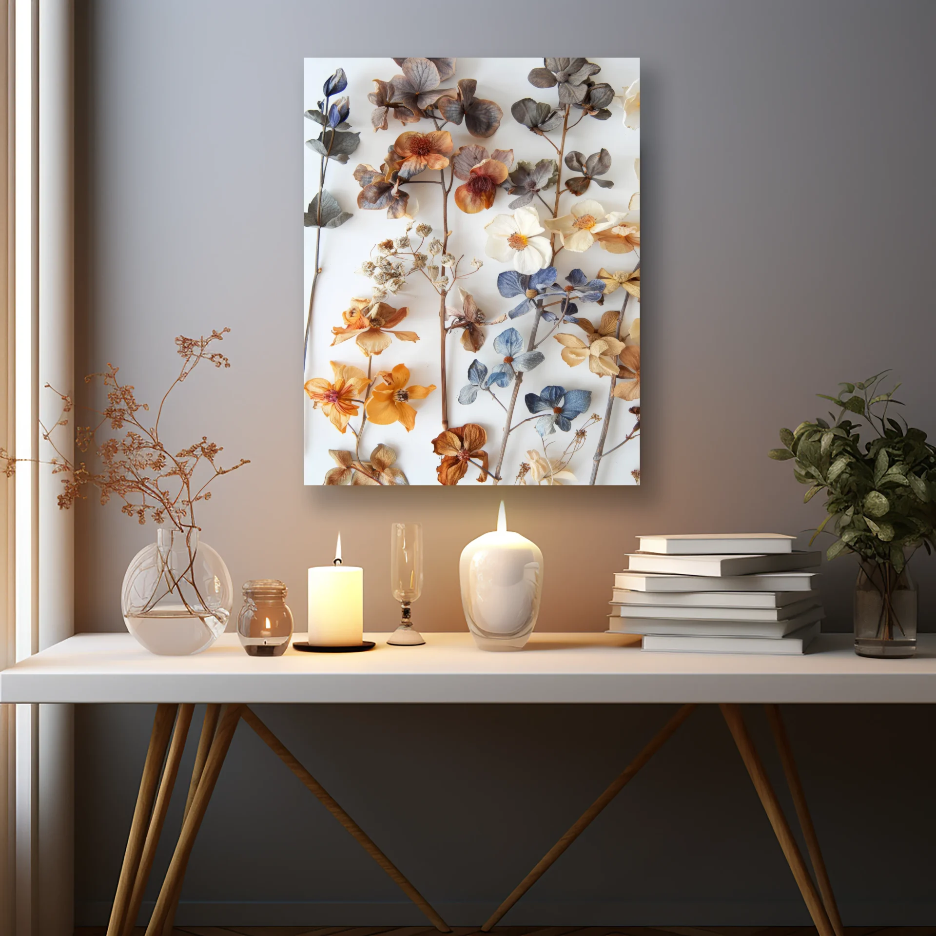 Renkli Çiçek Kolajı Metal Tablo