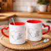 Sevgililer Gününe Özel Kaşık Hediyeli Kırmızı Kalp Kulplu 2 Adet Porselen Kupa Bardak 7