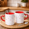 Sevgililer Gününe Özel Kaşık Hediyeli Kırmızı Kalp Kulplu 2 Adet Porselen Kupa Bardak 5