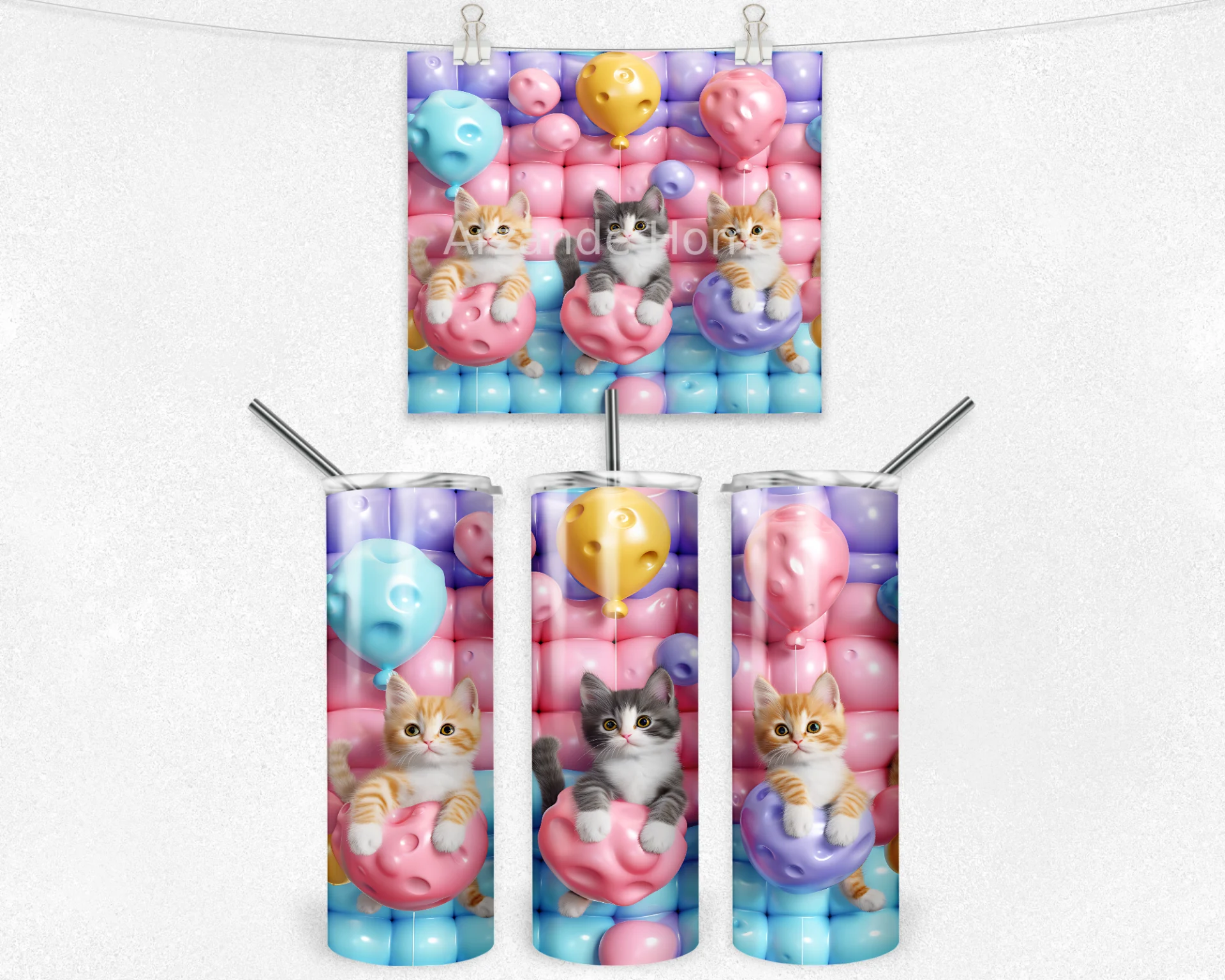 Pastel balonlar üzerinde oturan tatlı yavru kediler sıcak ve samimi bir his verir. Her yudumda mutluluk yaşatır.