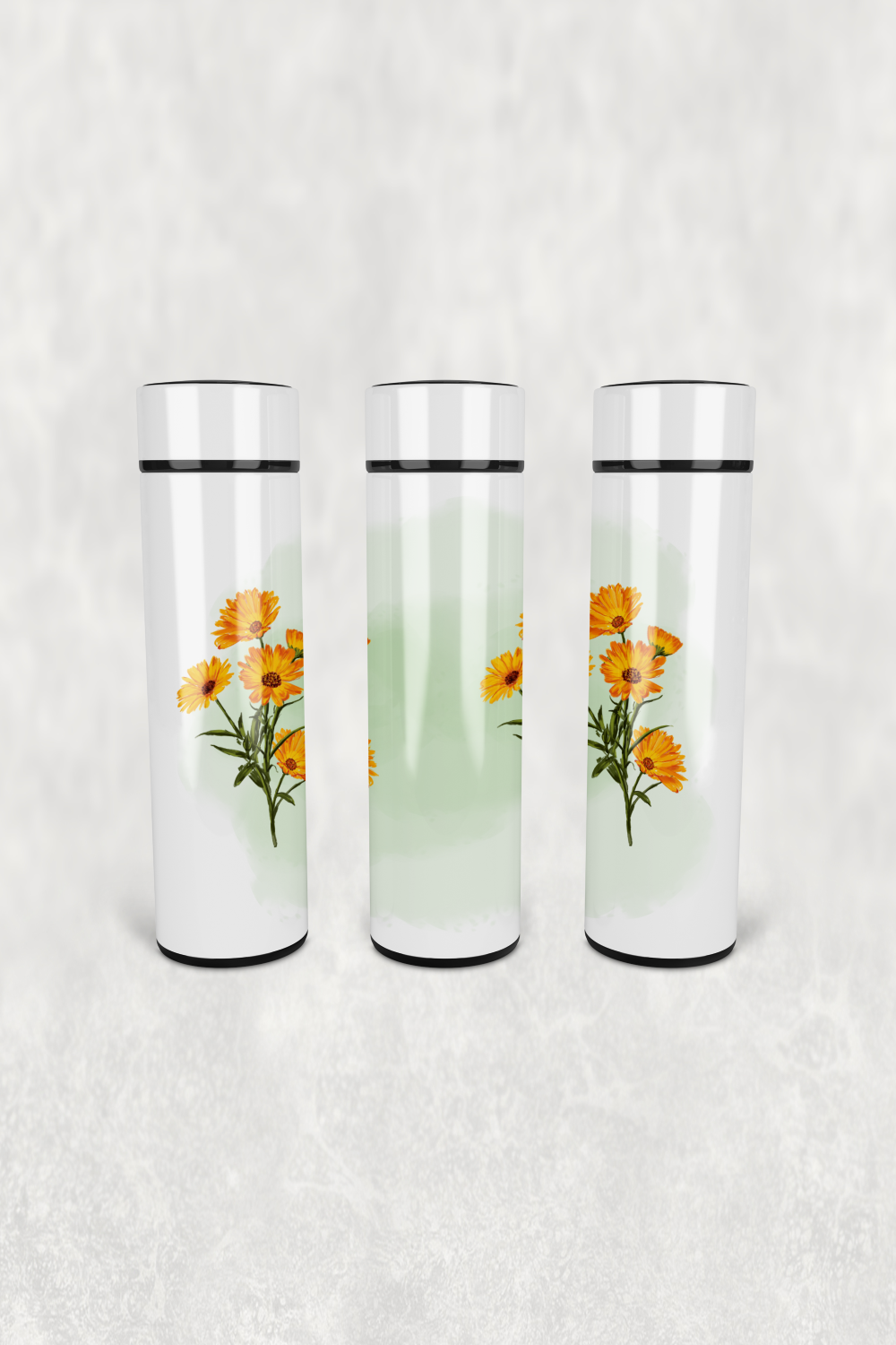 Turuncu Papatya Çiçek Led Derece Göstergeli Paslanmaz Çelik Termos 500 ML