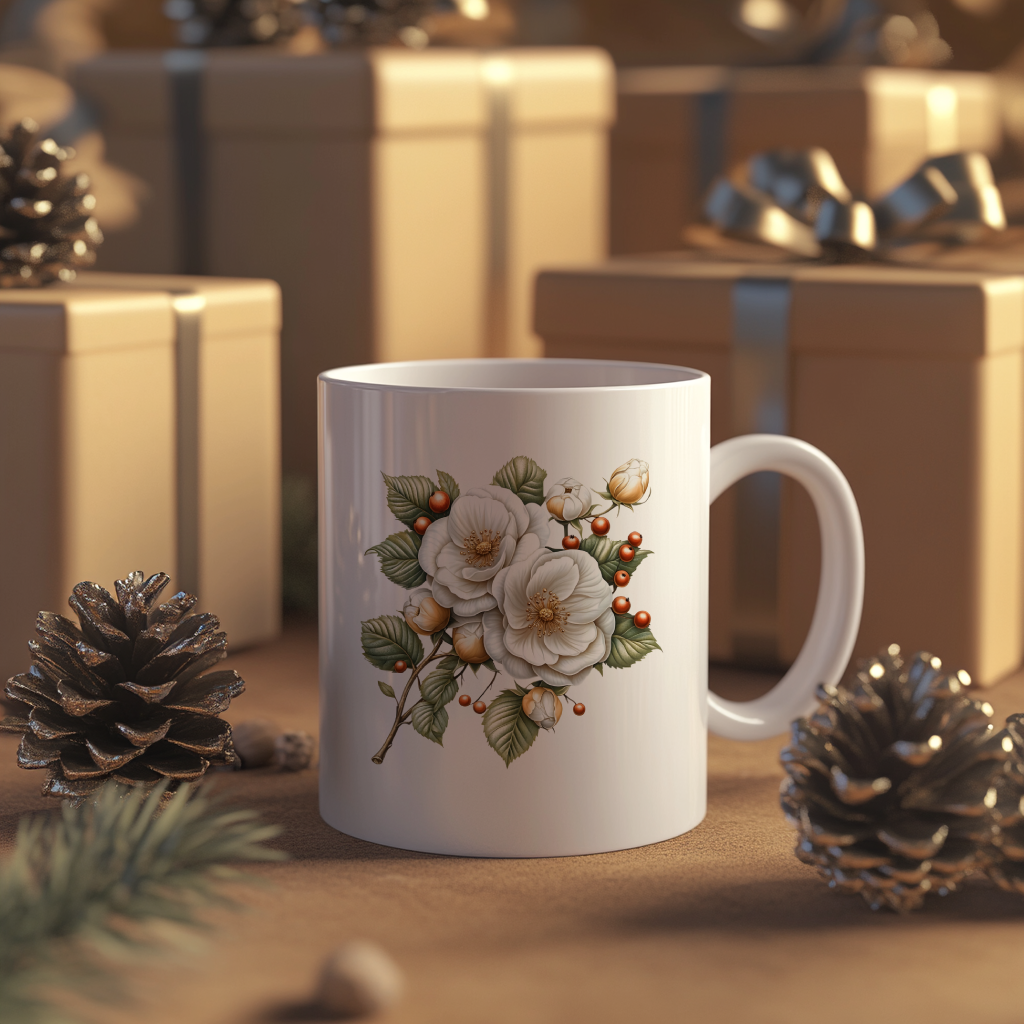 Yılbaşı ruhunu yansıtan porselen kupa, kahve ve çay saatlerine sıcaklık katar. Sevdiklerinize her kullanımda sizi hatırlatacak şık ve kullanışlı bir yeni yıl hediyesidir.