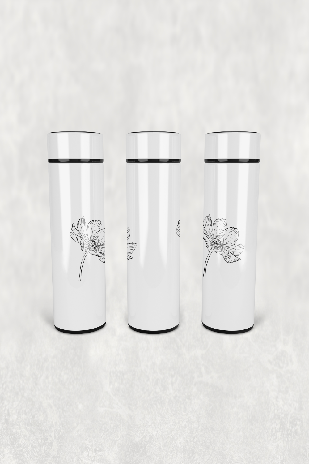 Zarif Gelincik Çiçek Led Derece Göstergeli Paslanmaz Çelik Termos 500 ML